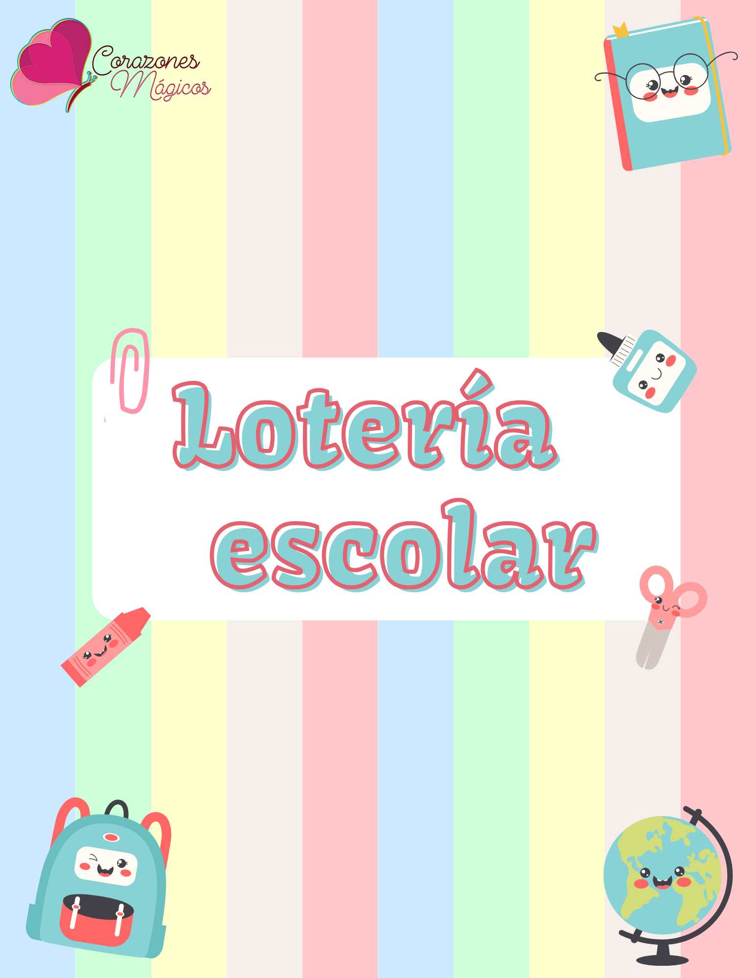 - LOTERÍA ESCOLAR: Contiene 20 cartones y 54 barajas